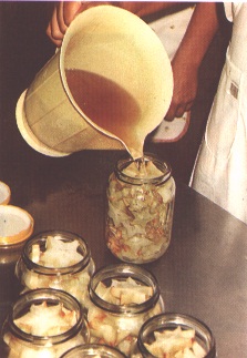 Frutos envasados listos para agregar salmuera (G. Paltrinieri)