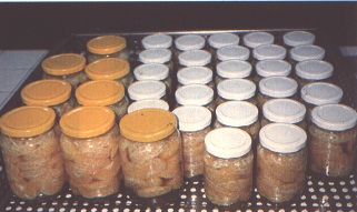 Frascos con gajos esperando adición del almibar (G. Paltrinieri)