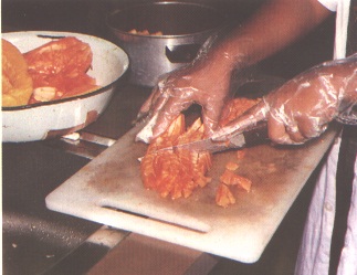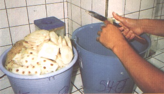 Corte de la pulpa pelada en trozos (G. Paltrinieri)