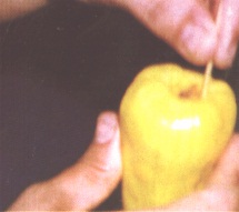 Pinchado de los frutos para favorecer la penetración de azúcar (G. Paltrinieri)