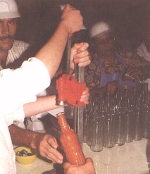 Tapado de las botellas con salsa caliente (F. Figuerola)