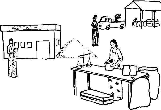 Petits exploitants. Dans le contexte du développement rural, la superficie de terre cultivée n'est pas nécessairement le critere majeur. Un hectare de terre irrigué peut en effet etre tres productif. En vérité, le petit exploitant est handicapé par le manque de moyens économiques qui l'empeche de prendre de trop gros risques, par un sentiment d'infériorité sociale, ainsi que par une instruction limitée et un acces restreint aux informations techniques et économiques. Il commence a gouter aux bienfaits d'un marché amélioré une fois que d'autres gros exploitants en ont profité. Il reçoit d'ordinaire des prix moins avantageux parce qu'il n'a que de petites quantités a offrir. Meme si le gouvernement fixe des prix officiels, les petits exploitants les touchent rarement. Ils vendent leur production a la ferme ou dans le village, et quelqu'un d'autre la prend en charge pour la livrer a la station officielle d'achat.