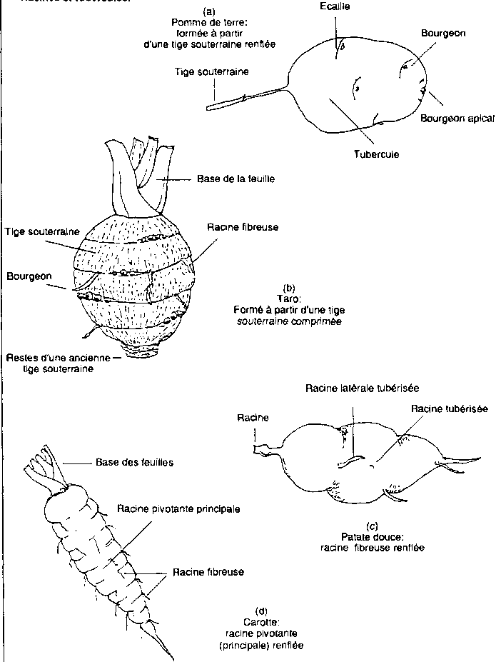 | Racine tubérisée (provenant d'une racine fibreuse) | Patate douce (figure 3c) |