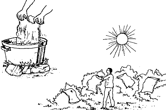 A method that has been found satisfactory in North Nigeria (a dry area) is that of storing threshed cowpeas in sealed plastic bags with cotton liners; the cotton prevents emerging insects from perforating the plastic bag.