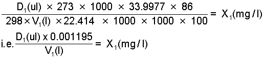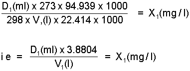 Step 2. Select nearest whole division on appropriate syringe to give actual dose volume D1(ml) of vapour and recalculate concentration, i.e. concentration X1(mg/l) actually applied.