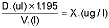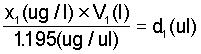 i.e. x1(mg/l) x V1(l) x 0.2577 = d1(ml)