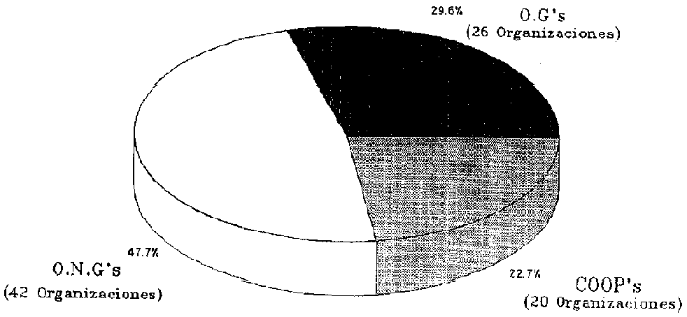En el cuadro No. 3 se puede observar que FONCOFIN ha firmado el mayor número de convenios con Organizaciones no Gubernamentales (47,7%), seguido de las Organizaciones Gubernamentales (29,5%) y por último las Cooperativas (22,8%). Actualmente, atendiendo a la lógica de descentralización de los programas del Estado, se está profundizando la promoción hacia las Alcaldías y Gobernaciones, por lo que podría esperarse que se revierta la tendencia hacia la firma de convenios con organizaciones gubernamentales por encima de las no gubernamentales.