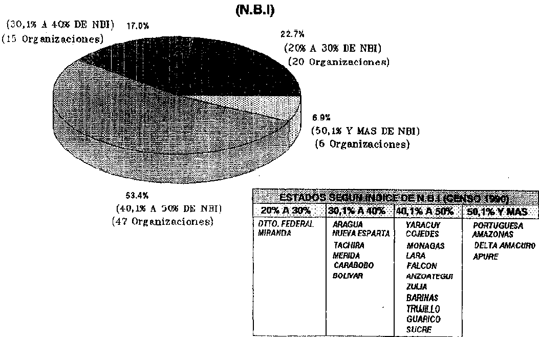 Ubicacion de las organizaciones en convenio según el indice de necesidades basicas insatisfechas