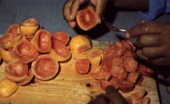- Cortar el pedúnculo hasta 1 cm de largo y hacer una incisión lateral para eliminar las semillas.