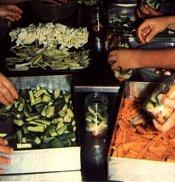 133. Cortando las diferentes hortalizas en forma homogénea. (G.