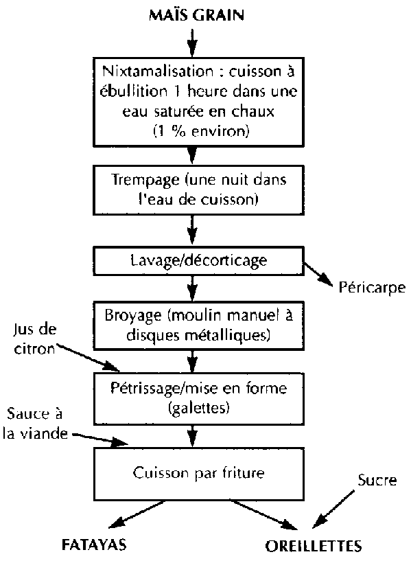 Figure 12. Production des produits nixtamalisés expérimentés à Ziguinchor, au Sénégal (d'après Mestres et al., 1991.