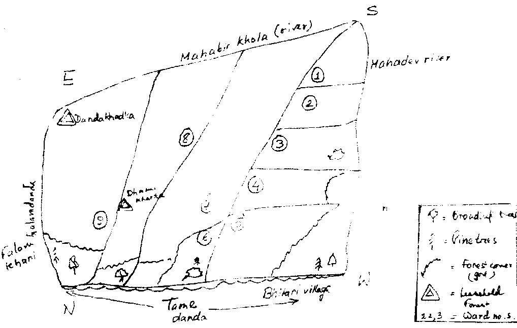 The group referred to here is that of Dhamikharka. The group is formed around 5 (five) women. The criteria was set by the SFDP staff. The members of the group are closely related to each other but live separately in their own families. Since this kind of leasehold forestry activity was totally a new concept in the village it was very difficult to motivate the poorer section of the population to form group. Since this group was in contact with the SFDP through loan involvement prior to this project, this HLFFDP activities were concentrated in this group.