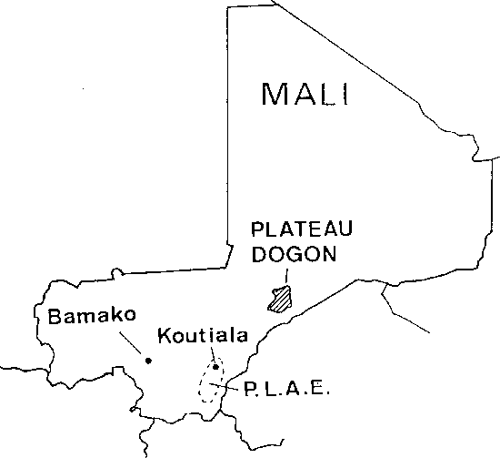 Situated in the eastern part of central Mali, the Dogon Plateau is well known to outsiders for its picturesque villages and spectacular cliffs and escarpments. The plateau is hilly and covered with rocky outcrops. But for the agricultural Dogon, the shortage of land to cultivate has always been a problem. Less than a quarter of the plateau's surface can be planted with crops, and much of the soil is just a thin cover over the rock.