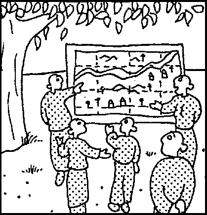 1. Introduce both the concept of maps, mapping, and/or aerial photographs, and the purpose of the exercise to groups of 5-7 persons. These small groups can be composed of representatives of different groups within the community, or different interest groups can do the mapping separately and then compare them.