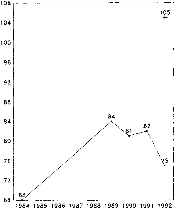 Tel que mentionné au début de ce rapport, il est très difficile d'obtenir une information exacte, constante et vérifiable. Les statistiques fournies par l'ONS (voir graphique) sont plutôt indicatives d'une valeur sûre et mesurable de la monnaie en termes d'échange.