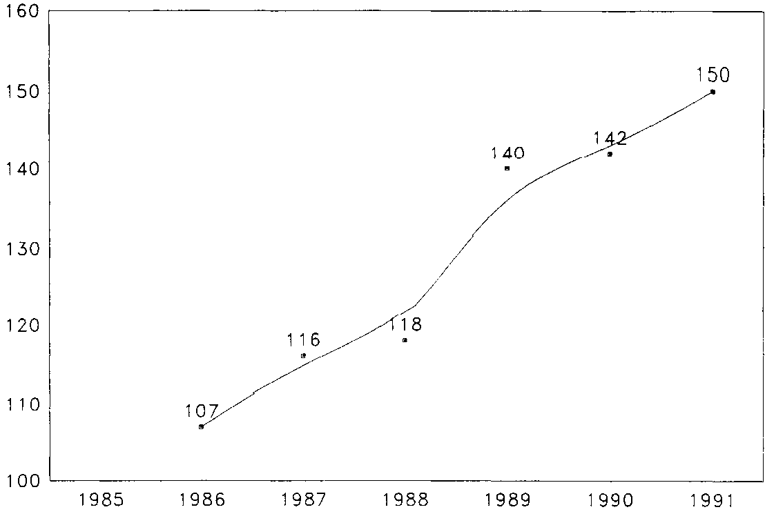 En utilisant les indices de prix préparés par l'ONS (Office Nationale de la Statistique), nous constatons une détérioration du pouvoir d'achat étalée sur toute la deuxième phase du projet. En même temps que la hausse des prix de 50% (pourcentage conservateur) durant la période 1986-1991, la valeur des contributions par les bailleurs de fonds a été diminuée. Entre 1989 et 1991, la valeur du dollar équivalente à l'ouguiya s'est détériorée de 11%.