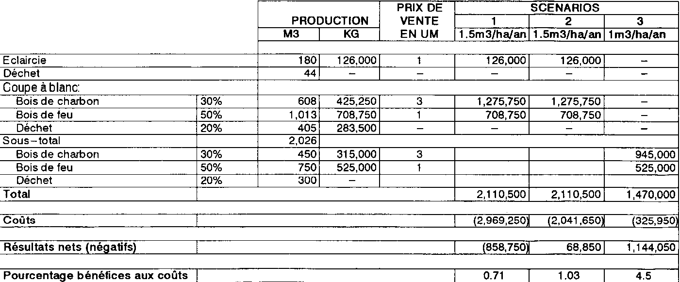 Comme pour le reboisement, la valeur de 12% est la valeur de référence. Lorsque ce facteur de 12% est utilisé, seul le scénario III est viable, avec les mêmes commentaires mentionnés pour le reboisement.