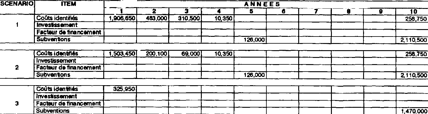 L'inconnu du scénario 3 est la capacité des collectivités d'assurer leur propre suivi, les éléments de gardiennage, entretien et contrôle étant minimisés dans les calculs de ce scénario.
