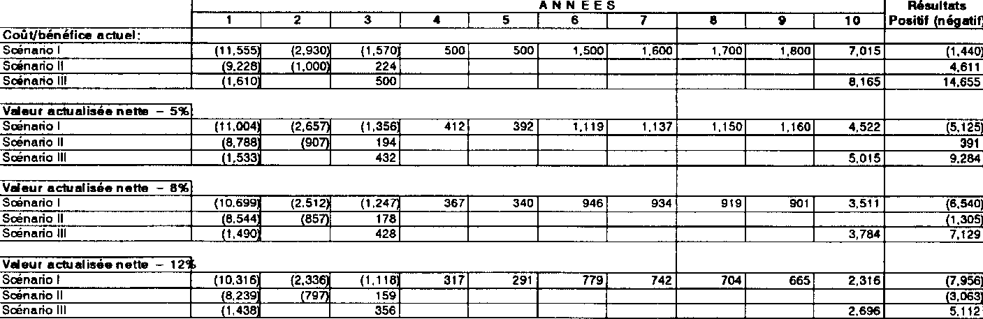 a) les résultats du scénario I, même avec une valeur actualisée de 12%, ne sont pas viables;