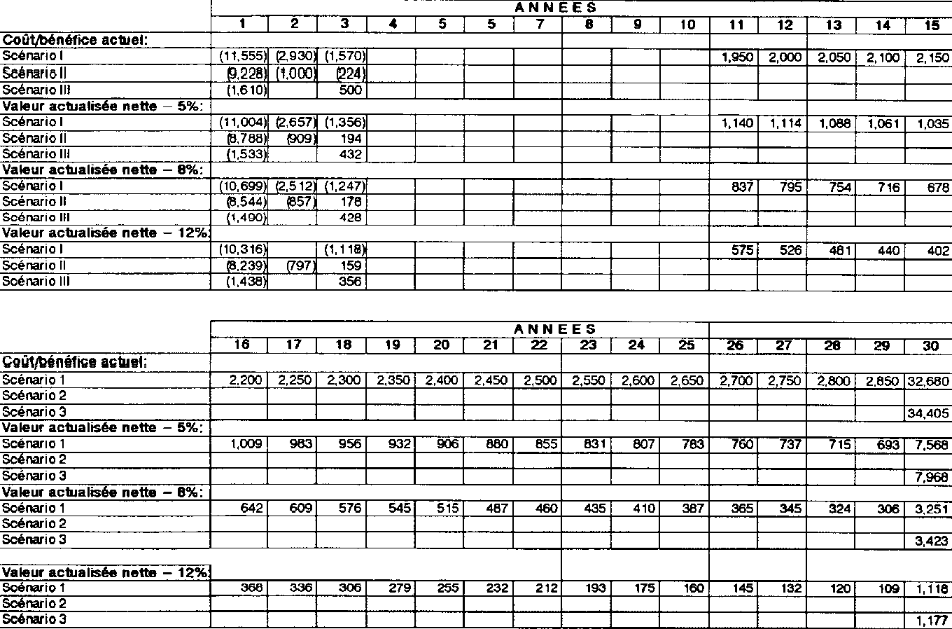 b) Les résultats du scénario II, avec une valeur actualisée de 8%, deviennent viables à compter de la 20e année et demeurent viables pour la durée du projet;