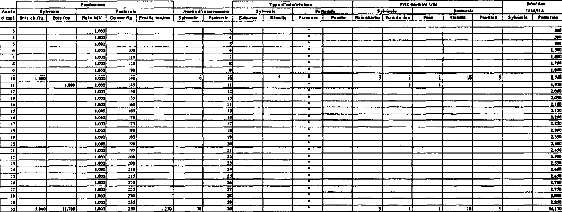 Un commentaire additionnel sur la forêt de reboisement concerne l'aspect des clôtures métalliques, applicable également à l'enrichissement sylvo-pastoral). Si le projet est orienté vers une rentabilité, l'utilisation des clôtures métalliques n'est pas possible. Si nous considérons l'argent investi par le projet pour cette rubrique (plus de U.S. $350,000) à 12% pour 10, 20 et 30 années, cet argent ne pourra être récupéré.