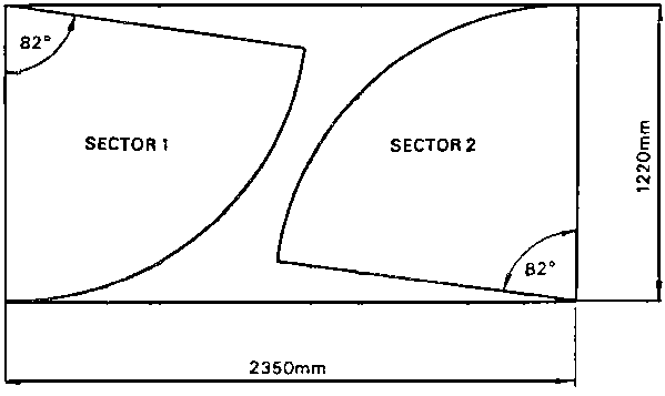 1. Mark out 4 sector shaped pieces of 2 mm m.s. sheet to the dimensions shown in Fig. 21. Two pieces can be cut from one sheet as shown in Fig. 22.2. Cut out sectors, remove any sharp edges.