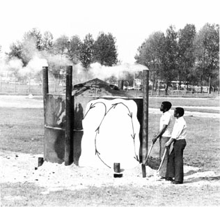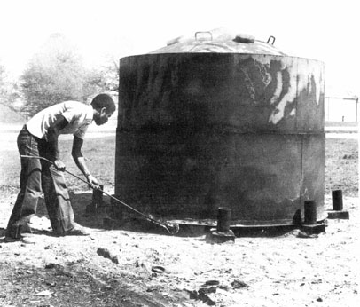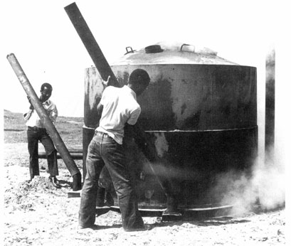 Foto 25: retorta hecha con tambores de aceite. Observar