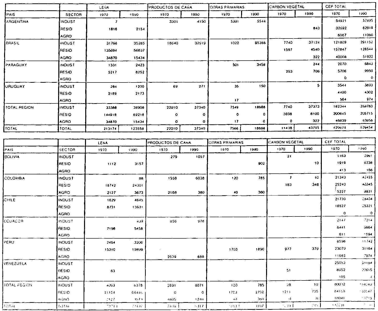 INTENSIDAD ENERGETICA (bep/10 ^ 3 US$ 1980) POR REGIONES