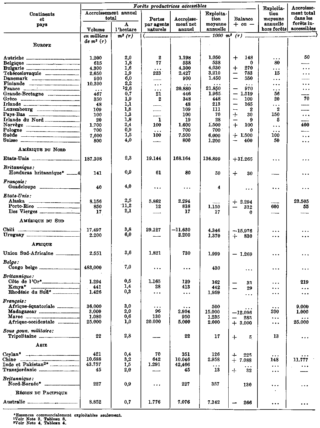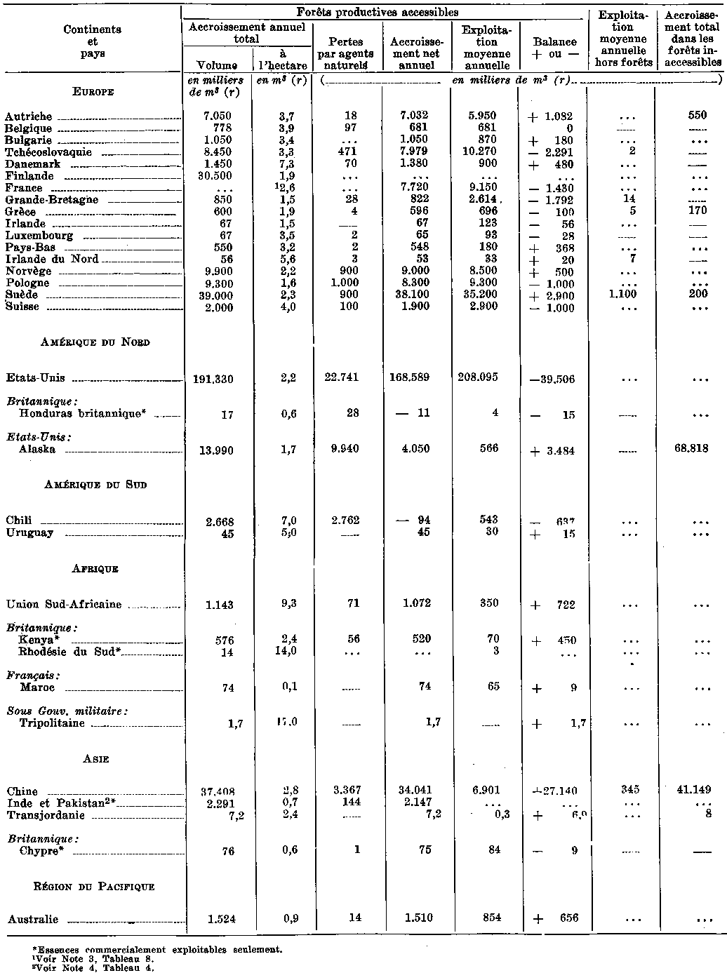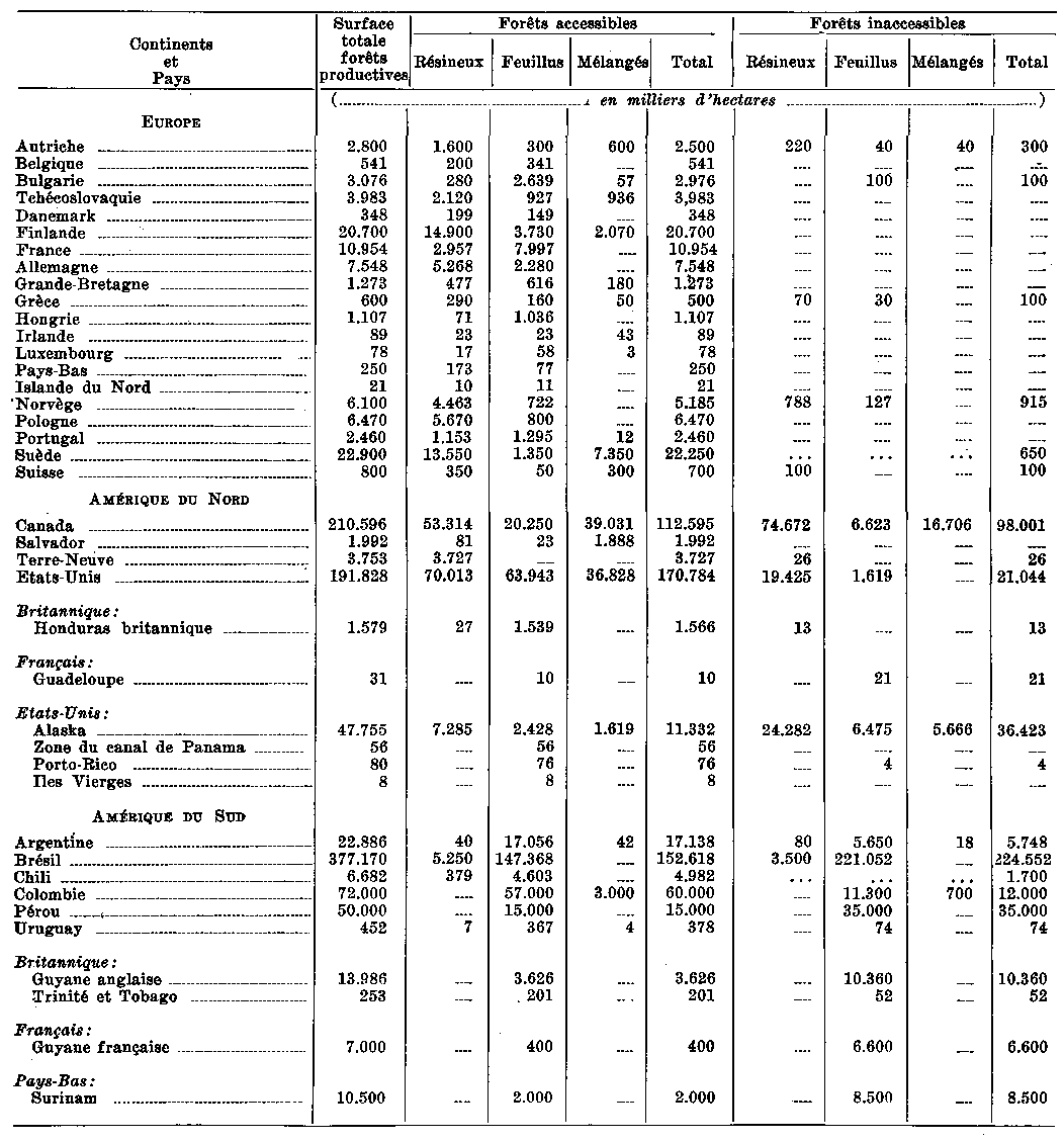Si le volume actuel des peuplements existants constituait la seule ressource pour l'avenir, les forêts mondiales seraient sans doute épuisées d'ici quelques dizaines d'années. Mais l'aptitude de la forêt à croître et à se reproduire contrebalance l'action des forces destructives et rend possible la réalisation de récoltes successives sur une surface donnée de forêt productive. En conséquence, pour une étude des ressources forestières du globe, la détermination de l'étendue des surfaces productives et, par dessus tout, la détermination du taux auquel elles sont susceptibles de produire indéfiniment du bois, est de beaucoup plus importante que l'évaluation du volume actuel des peuplements. Cependant cette évaluation est nécessaire pour guider la politique actuelle et pour servir de base à des comparaisons ultérieures.