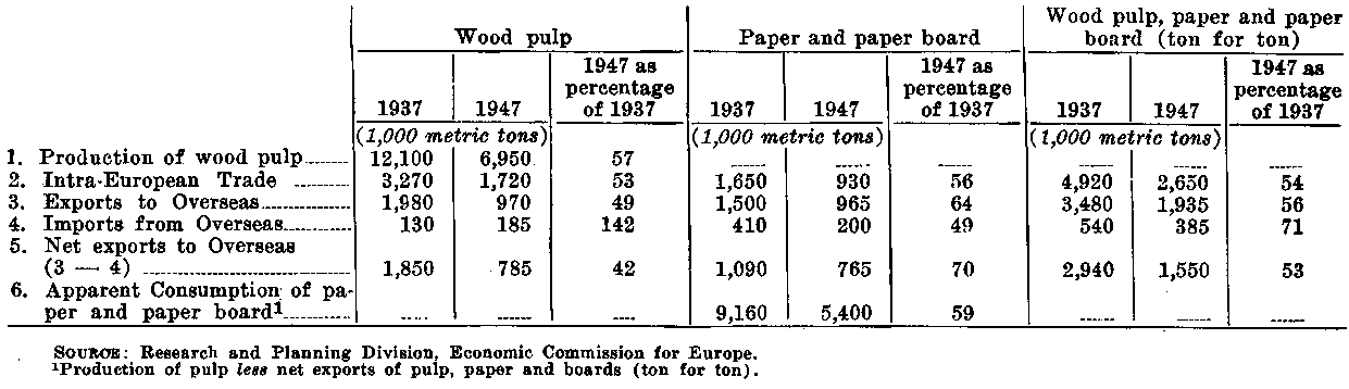 In prewar years net imports of softwood lumber to Europe (including the U.S.S.R.) amounted to only a few percent of total consumption. Since, at the same time, there was a net export of pulp from Europe representing a somewhat greater amount of roundwood, it could be said that Europe's wood requirements were more than met by its own resources.