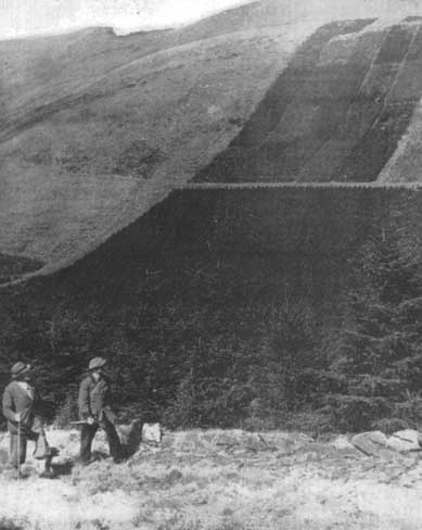 Afforestation of hillside. Experimental plantation in a State forest in Wales.
