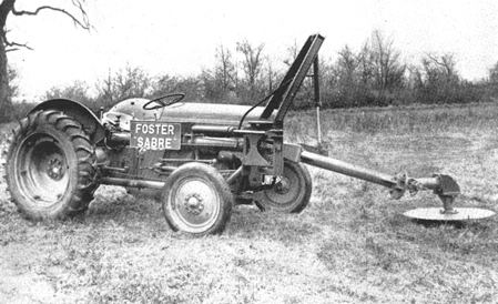 Construída para usarla con el tractor Nuffield «Universal». Consiste en un tubo de acero de 11,4 CM. (41/2") de diámetro situado al lado izquierdo del bastidor del tractor (visto desde el asiento de conducción), que en su extremo posterior dispone de una caja de engranajes cónicos helicoidales, a la que está acoplada la polea motriz. Hojas cortantes disponibles: sierra de 100 dientes con capacidad para cortar diámetros de 45,7 a 50,8 cm. (de 18" a 20"), y 4 cuchillas con capacidad para cortar diámetros de 10 cm. (4"). Ambas hojas tienen un diámetro de 122 cm. (48").