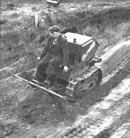 La hoja zapadora está sujeta a un brazo tubular montado a su vez sobre pivotes situados próximos al centro del bastidor, y puede elevarse y mantenerse a la altura deseada por medio de un cabrestante mecánico. El descenso está regulado por un freno. En lugar de la hoja puede montarse un accesorio escarificador para trabajos en terrenos duros. Características: motor de gasolina, de tipo industrial, 9 HP al freno. Velocidades: hacia adelante, 2,3 Km/h. (1,4 m.p.h.); hacia atrás, 2,6 Km/h. (1,6 m.p.h.). Altura total, 1,40 m. (4'-7"), longitud total, 2,17 m. (7' 1 ½"); anchura, 1,14 m. (3'-9"); ancho de la hoja, 1,37 m. (4'-6"); peso, 1.500 Kg. (29 quintales de 112 lbs.).