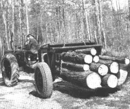 Esta carretilla puede engancharse a cualquier tipo de tractor con neumáticos de caucho. Las operaciones de carga, arrastre y descarga por volteo o el descenso de la madera las realiza el conductor del tractor. El mecanismo elevador hidráulico está accionado por el motor del tractor. Capacidad de elevación, 5.400 Kg. (12.000 libras). Está construída para el transporte de madera de 4,9 m. (16") de longitud, equilibrada y nivelada y a suficiente distancia del suelo. Puede también transportar longitudes mayores, pero en forma no equilibrada. Capacidad de carga: 17 m.3 (600 pies cúbicos) de trozas o 28,3 a 42,5 m.3 (1000 a 1.500 pies cúbicos) de madera aserrada.