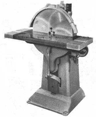 MASTER 24 IN. DISC GRINDER AND SANDER - Main features: the reversible dive permits efficient grinding of right and left hand jobs; adjustable table can be moved up or down 11 in. (28 cm.) exposing the entire face of the dive; table also tilts up to 30° and down to 45°. Specifications: motor: standard 2 h.p. 220/440 or 550 volt, 3-phase 60-cycle AC, 1725 r.p.m.; disc: boiler plate steel 24 in. (61 cm.) diameter x 1/2 in. (1.3 cm.) thick; disc speed: standard 1150 r.p.m., other speeds to order; bearings: double row heavy roller bearings at front and rear of shaft, table: normalized cast-iron box-type, 13 x 30 in. (33 x 76 cm.) In normal position is 37 in. (94 cm.) from floor; floor space: 33 x 33 in. (84 x 84 cm.) shipping weight: approx. 900 lb. (408 kg.).