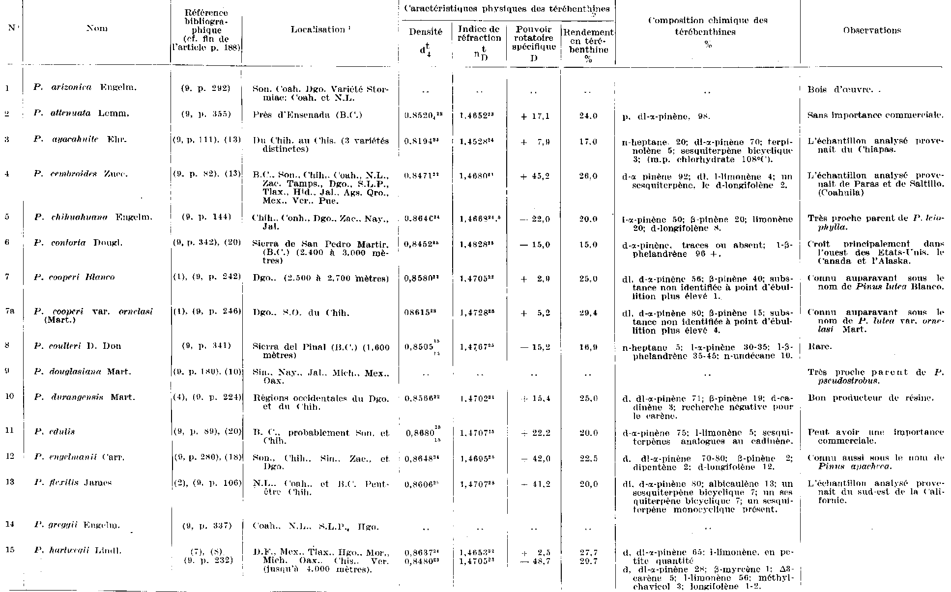 (7) ILOFF, P. M. et MIROV, N.T. «Composition of Gum Turpentines of Pines, XXII. A report on Pinus rudis and P. hartwegii from Mexico and P. insularis from, Philippines». Jour. Amer. Pharm. Assoc. Sci. Ed. 1954 (En préparation).