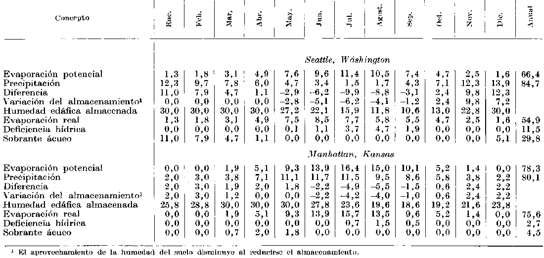 1 La definición de esta palabra se encuentra más adelante.2 THORNTHWAITE, C. W., y HOLZMAN, BENJAMÍN, «Measurement of evaporation from land and water surfaces» U.S. Dept. Agric. Tech. Bul. N° 817, 1942, 143 páginas.