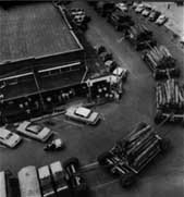 Fotografía de la cubierta: Aunque los pesados autocamiones con remolque raramente se prestan para circular A diario por las aglomeraciones urbanas, esta fotografía muestra la pericia casi temeraria con que toman la cerrada curva de una esquina. Cada remolque cuenta para su autolocomoción con un potente motor eléctrico en cada rueda, lo que da al conjunto el singular aspecto de un tren con transmisión sobre sus treinta V dos ruedas. Las estructuras rectangulares sobre el vehículo de cabeza, empacando por la izquierda, son: la cabina del conductor, de siete plazas; un depósito de carburante, capaz para más de 13,000 litros, V dos grupos motores-generadores para alimentar los motores eléctricos de las ruedas. Construido por R. G. Letourneau, de Longview (Texas), donde ha sido tomada esta fotografía.