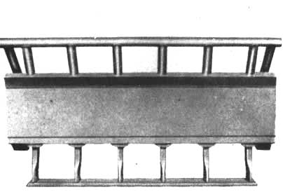 Supp rail (Figure 28). The Supp is a straight rail made out of three sections aligned side by side and perpendicular to the line of travel. Flexible couplings connect the sections. It is necessary to attach drag rails or posts to the ends of each of the sections. This gives the front rails more weight and keeps the entire implement from bouncing around, and it is kept aligned more easily. Recommendations are that these be at least 10 feet (3 m.) long, as compared with the 33-foot (10 m.) combined width of the front rails.