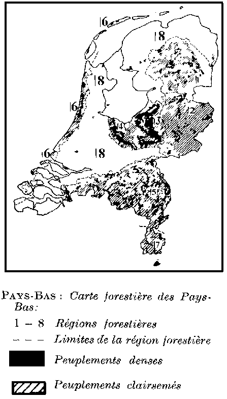En 1952, on a entrepris un nouvel inventaire forestier, en vue d'obtenir des renseignements détaillés sur la composition des terrains boisés et des terres incultes dans chacune des huit régions forestières qui couvrent maintenant l'ensemble du pays. On a effectué en 1952-53 l'inventaire de la première région qui comprend l'est de la province d'Utrecht et une petite partie adjacente de la province de Hollande du Nord. On a achevé récemment l'inventaire de la seconde région, c'est-à-dire l'ouest de la province de Guelderland (que l'on appelle Veluwe). Le recensement de l'ensemble du pays devrait être achevé aux environs de 1962.