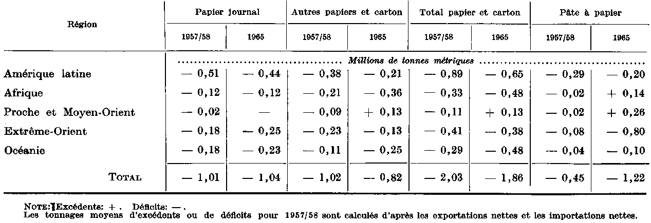 21. En ce qui concerne les régions actuellement déficitaires, la Consultation a remarqué que l'accroissement limité d'importations envisagé dépendait de la réalisation de plans d'expansion ambitieux et impliquant de lourds programmes d'investissement. Cet accroissement ne tient pas compte du fait que les besoins de papier pourraient, par suite de mesures gouvernementales spéciales, augmenter dans certaines de ces régions plus rapidement que la Consultation n'a prévu. Dans les régions en cours de développement, un effort soutenu s'impose donc pour éviter que les importations ne dépassent les limites possibles, faute de quoi il faudrait diminuer volontairement la consommation, ce qui paralyserait dans ces régions les progrès de l'économie, de l'instruction et de la culture.