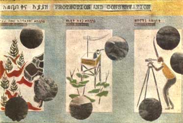 FIGURE 14. - Les panneaux 23 et 24 résument, l'un en amharique et l'autre en anglais, les enseignements contenus dans la première partie de l'exposition et lancent un appel à l'individu et à la nation pour que tous contribuent d'arrêter la destruction de la forêt et à réparer les dégâts.