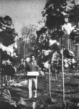 El resultado de estas investigaciones iniciales fue de unos 200 injertos logrados. Se observaron atentamente durante la primera temporada vegetativa y fueron medidos mensualmente, la última vez en diciembre, que es cuando termina la temporada de lluvias. Tres de los injertos habían muerto a causa de los termes, pero los restantes tenían una altura media de 1,78 m. Algunos clones midieron 2,26 m. y eran casi tan altos como los brinzales que crecían en torno a las parcelas experimentales (Figura 3).