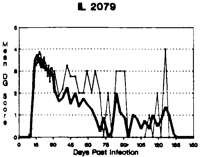 c Average number of days post-infection (in brackets) after which treatment was required.