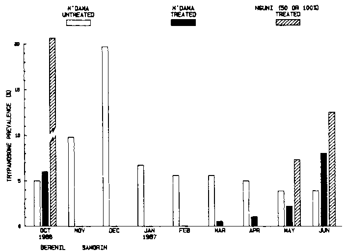 Figure 3. Effect of chemoprophylaxis on trypanosome prevalence