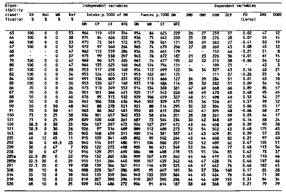 The results have allowed us to establish preliminary equations relating intake and nutritive value of various feeds to their chemical analysis.