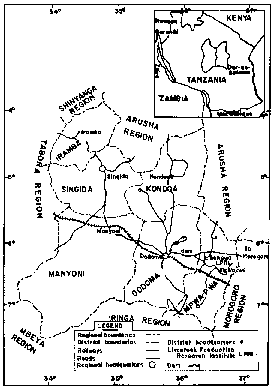 A team of scientists from the Tanzania Livestock Research Organization (TALIRO) formulated a Farming Systems Research (FSR) project entitled "Improvement of Animal Production Systems in Central Tanzania". The main objective of the project was to gain an understanding of the existing livestock farming system and develop improved pasture management, livestock feeding, herd composition and management practices that are acceptable to farmers in the traditional sector of Central Tanzania (Anon, 1986). This paper attempts to describe and discuss the livestock feeding aspects of the study area as drawn from a diagnostic survey of Mpwapwa District.