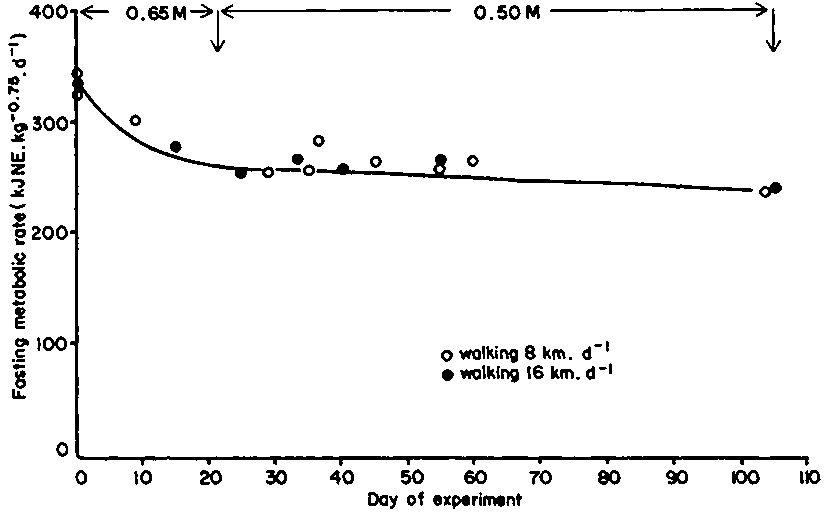 To maintain bodyweight, the cow must also graze and walk to water, which increases energy expenditure above basal rates by 30-70% (Young and Corbett, 1972; Lewis, 1975).