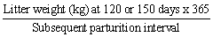 Index II = Weight (g) of young produced per kg liveweight of female per year =