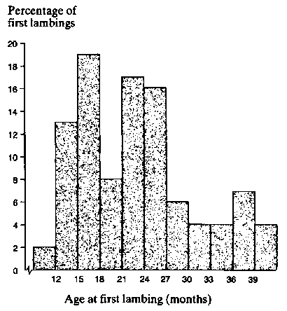 In an earlier investigation into characteristics of ewes lambing for the first time at El-Huda (Sulieman et al, 1985) lambs conceived for the first time when they weighed about 20 kg.
